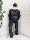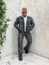 Il coordinato laser scacchi è perfetto per un look casual ma stiloso. Realizzato in tessuto denim con sfrangiature, il giubbino ha una vestibilità regular mentre il pantalone è baggy fit per un comfort ottimale. Il modello in foto indossa taglia M ed è alto 165 cm e pesa 73KG. Aggiungi un tocco di moda al tuo guardaroba con questo coordinato.