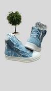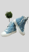 Scopri la perfetta combinazione tra funzionalità e tendenza: questa scarpa in denim a collo alto con zip è pronta a diventare un must nel tuo guardaroba.