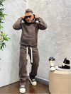 La tuta è perfetta per un look streetwear lussuoso, ideale per chi cerca una combinazione di comfort e alta moda. Può essere abbinata a sneakers eleganti o a stivali, e può facilmente essere mixata con una giacca elegante o una felpa per creare outfit versatili. Le bande laterali richiamano l'iconico design delle linee sportive, ma l'uso della lana e la vestibilità ampiamente rilassata conferiscono un tocco di classe, che rende questo capo perfetto sia per il tempo libero che per momenti più casual.