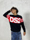 Maglioncino firmato DS2, dallo stile contemporaneo e dettagli grafici d’impatto.
