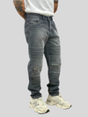 Jeans mod. BIKER GREY caratterizzati da una vestibilità loose fit e realizzati in robusta tela fissa. Dotati di zip funzionali alle ginocchia e dettagli di abrasione che arricchiscono il design, garantiscono durata e uno stile unico. Completamente made in Italy, rappresentano un capo di alta qualità. Il modello indossa la taglia 46, con altezza 175 cm e peso 75 kg, evidenziando una vestibilità confortevole e moderna.