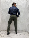 Pantalone sartoriale realizzato secondo la tradizione della bottega napoletana, caratterizzato dalla raffinata fantasia principe di galles. Taglio elegante e proporzioni studiate per garantire una vestibilità impeccabile. Costruzione artigianale che combina precisione tecnica e attenzione ai dettagli, tipica della sartoria partenopea. Ideale per chi ricerca un capo versatile, adatto sia a contesti formali che a outfit più contemporanei. Tessuto di qualità che assicura comfort e durabilità nel tempo.