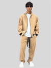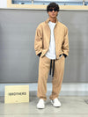 Un completo dal carattere deciso e contemporaneo, composto da jacket oversize e pantalone ampio in morbida ecorenna, un materiale innovativo che unisce l’estetica della pelle scamosciata al comfort di un tessuto leggero e traspirante.